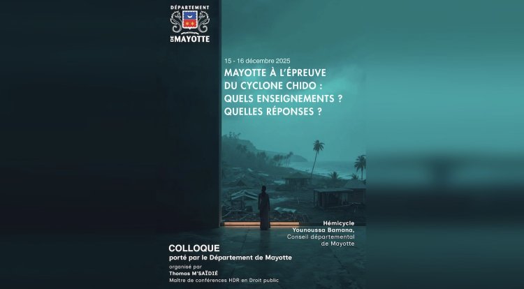 Le Département de Mayotte organisera les 15 et 16 décembre 2025, à l’Hémicycle Younoussa Bamana, un colloque international intitulé « Mayotte à l’épreuve du cyclone Chido : Quels enseignements ? Quelles réponses ? ». Cet événement d’envergure, placé sous la coordination scientifique de Thomas M’Saïdié, maître de conférences HDR en droit public, rassemblera des experts venus de Mayotte, de l’Hexagone, des Antilles, de la Guyane, de La Réunion, d’Italie et d’Espagne...
